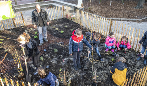 Groenten zien groeien is net als de ontwikkeling die kinderen doormaken prachtig, maar vergeet ze geen aandacht te geven! De moestuin is erg populair op het schoolplein. De kinderen leren over de herkomst van hun groenten.Kinderen kunnen het proces van zaadje tot plant op de voet te volgen. Tuinkers, tuinbonen, slasoorten, peentjes, uien, snijbiet, radijs, kruiden en aardbeien zijn voorbeelden van makkelijke groenten voor in de moestuin.