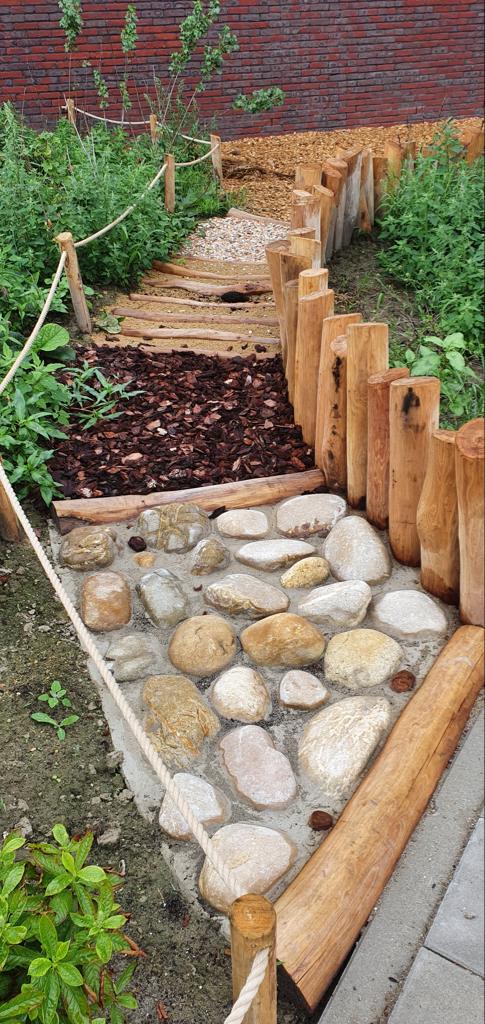 Het belevingspad wordt ook wel het blote voeten pad genoemd en zit vol ontdekkingen. Het pad heeft verschillende typen ondergronden, planten en verstopplekken. Het liefst realiseren we het belevingspad tussen het groen.
