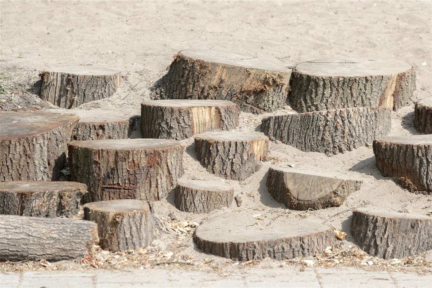 De stapstammen staan vast in de grond. We kunnen ze ook los leveren zodat de kinderen er zelf mee aan de gang kunnen. Dit levert geregeld hele leuke speelparcours op.