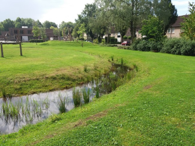 De wadi helpt tegen wateroverlast en droogte. Naast de functionele toevoeging van de wadi kun je er ook een speelelement van maken, door er bijvoorbeeld een bruggetje overheen te bouwen of stapstenen in te realiseren. Door de wadi te voorzien van een speciaal zadenmengsel, zullen er bijzondere planten in de wadi gaan groeien.