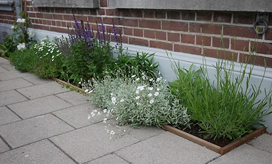 Een geveltuin is een smalle strook met fleurige bloeiende beplanting langs de gevel van het schoolgebouw. In deze langwerpige strook kun je diverse soorten beplanting toepassen. De geveltuin neemt niet veel plek in maar geeft wel een mooi effect. Aan de hand van de ligging van de geveltuin kunnen wij samen met jullie bepalen welke planten we toepassen.